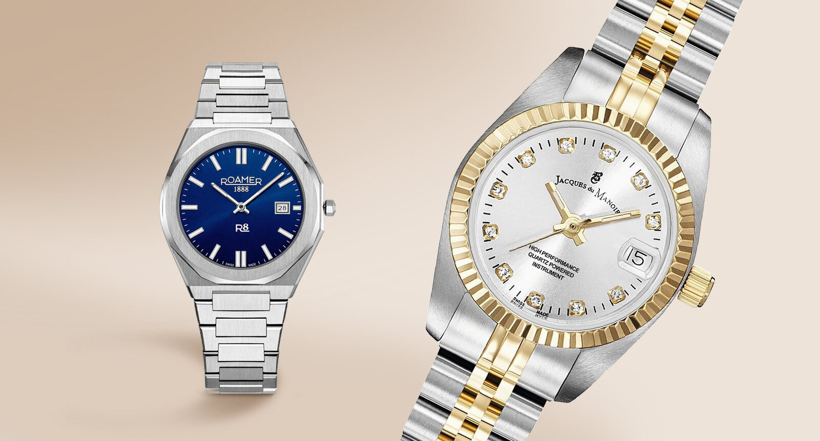 Izgled i trajnost sata određuje njegovo kućište, a kod Roamer i Jacques du Manoir satova dizajnirano je da prati trendove, ali uvijek zadržavajući prepoznatljivu eleganciju. Kod oba brenda, kućište je izrađeno od nehrđajućeg čelika visoke kvalitete koji je često kombiniran s PVD premazom u bojama kao što je zlatna.