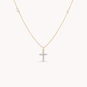 Zlatna ogrlica Križ s detaljima bisera